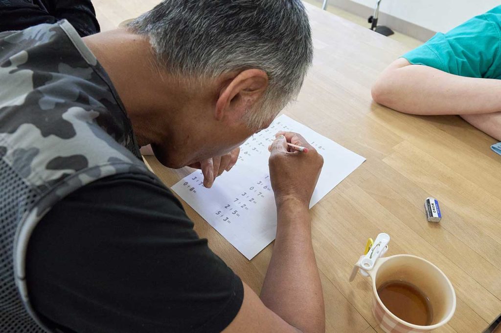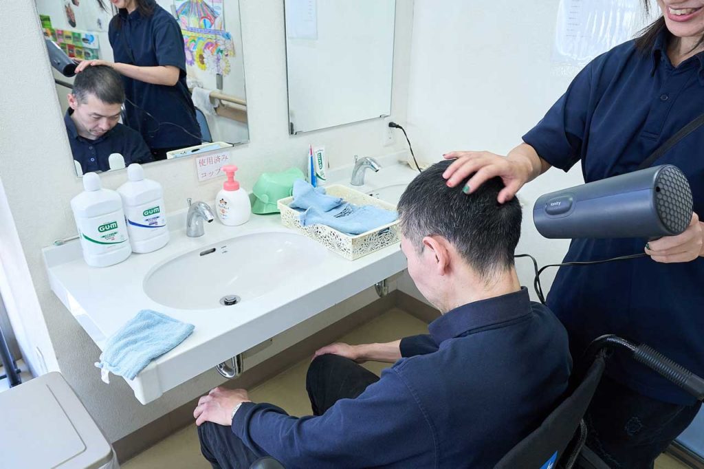 プリントや筆記用具の準備、その裏で入浴がある方は入浴介助を行います。
