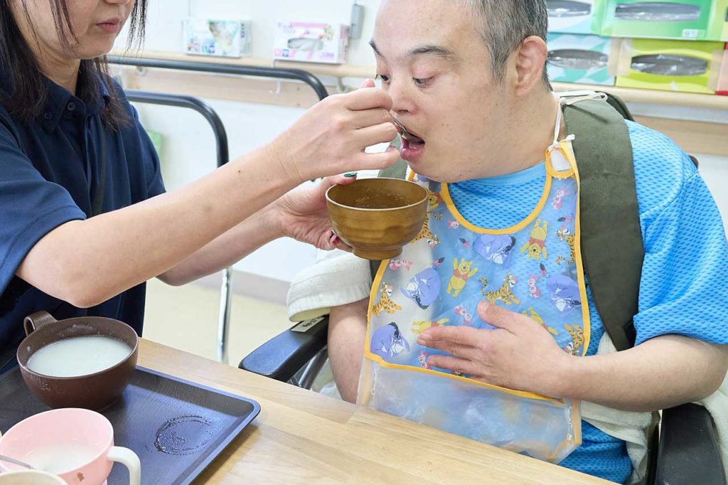 昼食は配膳をし、お薬の提供→口腔ケア誘導などを行っていただきます。